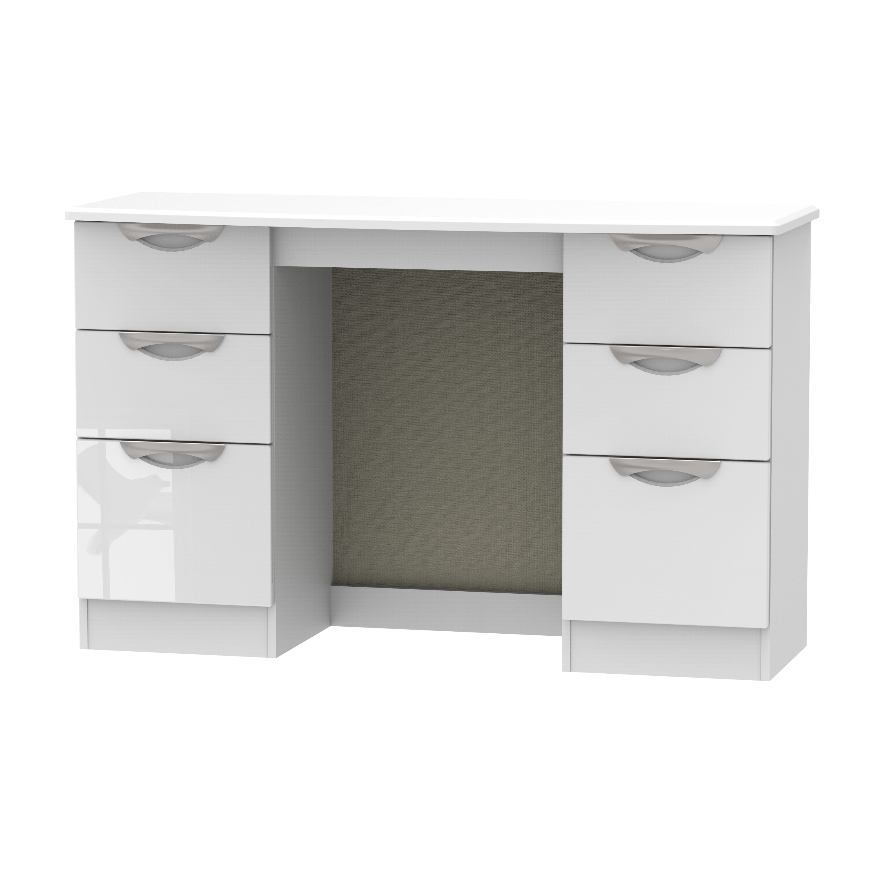 Modern writing desk conveys strength and elegance with clear tempered glass side panels desk includes an open storage compartment and two (2) drawers with silver hardware finish glass, mdf, particle board, and laminate construction available in weathered grey, glossy white, and glossy black finish: Greenforest vanity desk 47'' glossy white console table computer makeup desk with 2 drawers and solid metal legs for living room entryway hallways. Create a home office with a desk that will suit your work style. Amazon's choice for high gloss white desk. Of 23 *see offer details.